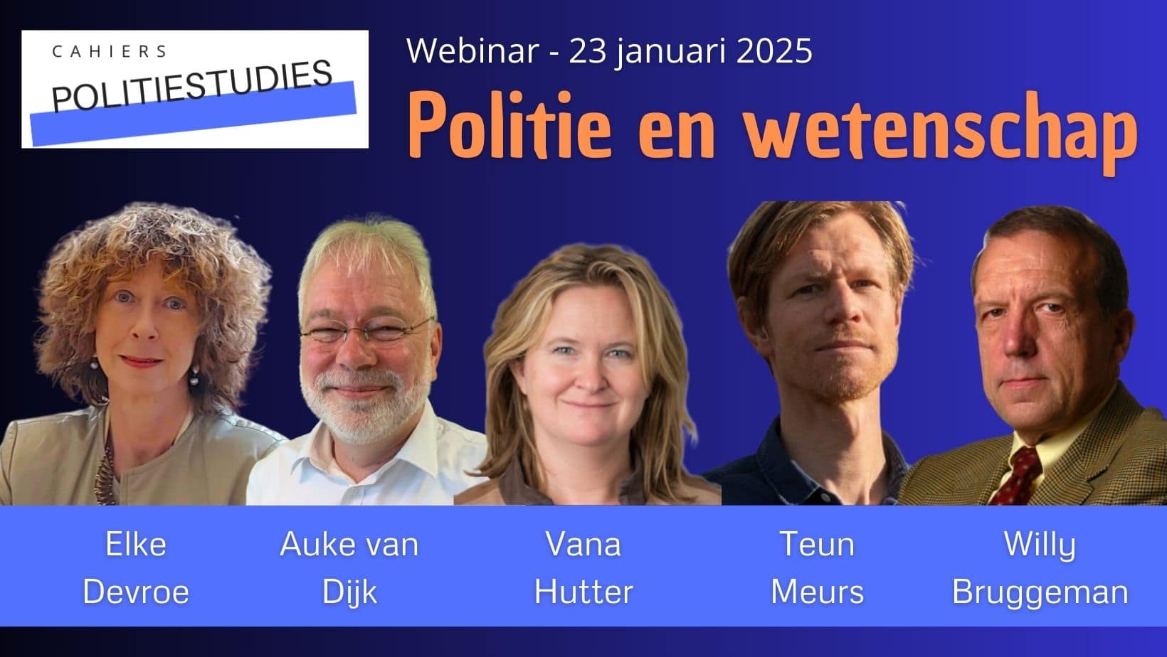 SCHRIJF NU IN Webinar Politie en wetenschap 23 januari 2025 van 13.30 uur tot 16.30 uur Voorzitter en moderator: Dr. Elke Devroe Situering Er valt veel te zeggen over de relatie tussen politie, wetenschap, beleid en praktijk in België en Nederland. In grote lijnen, en dus zonder exhaustief te willen zijn, gaat het huidige debat over: de verhouding tussen onderzoek over, voor, door en met de politie, de institutionele inbedding en financiering van het politieonderzoek, de culturele verhouding …